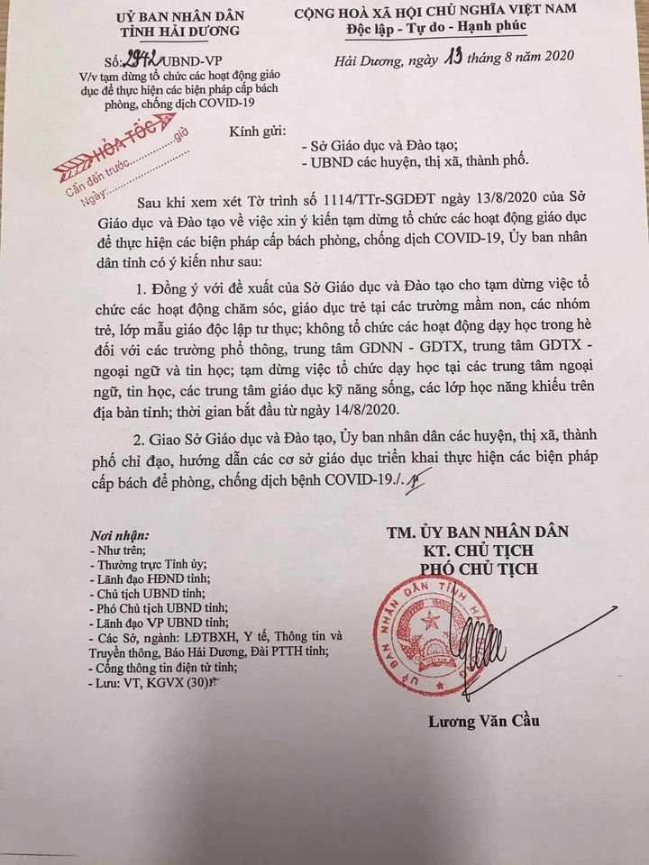 Thực hiện chỉ đạo tiếp theo của UBND Tỉnh và Sở Giáo dục & Đào tạo Tỉnh Hải Dương đối với tất cả các trường học và các cơ sở đào tạo trên địa bàn Tỉnh, Sunshine Vietnam xin thông báo: