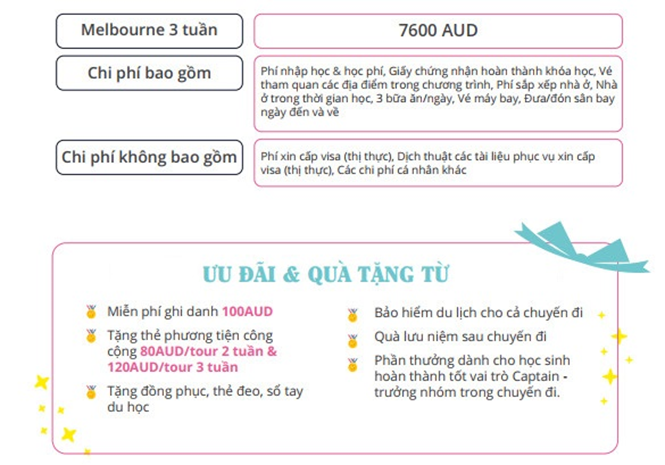 4.1 Chi phí chương trình tại Melbourne: